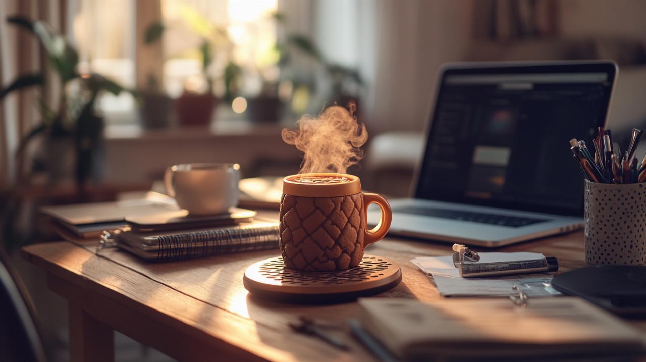 La principale révolution apportée par ce chauffe-tasse réside dans sa capacité à préserver la température de vos boissons pendant plusieurs heures. La plaque chauffante maintient constamment votre café, thé ou eau chaude aux alentours de 60 à 65 degrés, éliminant définitivement la frustration du breuvage refroidi. Cette fonctionnalité transforme profondément votre expérience au travail en vous permettant de siroter votre boisson à votre rythme, sans précipitation. Certains modèles plus avancés disponibles chez des marques comme Mr. Coffee ou Muggo intègrent même un contrôle de température personnalisable et un système d'arrêt automatique après 8 heures d'utilisation pour optimiser la consommation énergétique. Le gain de temps généré par cet accessoire n'est pas négligeable. Fini les allers-retours répétés à la machine à café ou à la bouilloire pour réchauffer votre tasse. Cette continuité dans la dégustation favorise une meilleure concentration et réduit les interruptions dans votre flux de travail. De plus, le maintien de la température contribue activement à la réduction du gaspillage, puisque vous ne jetterez plus de café devenu imbuvable.